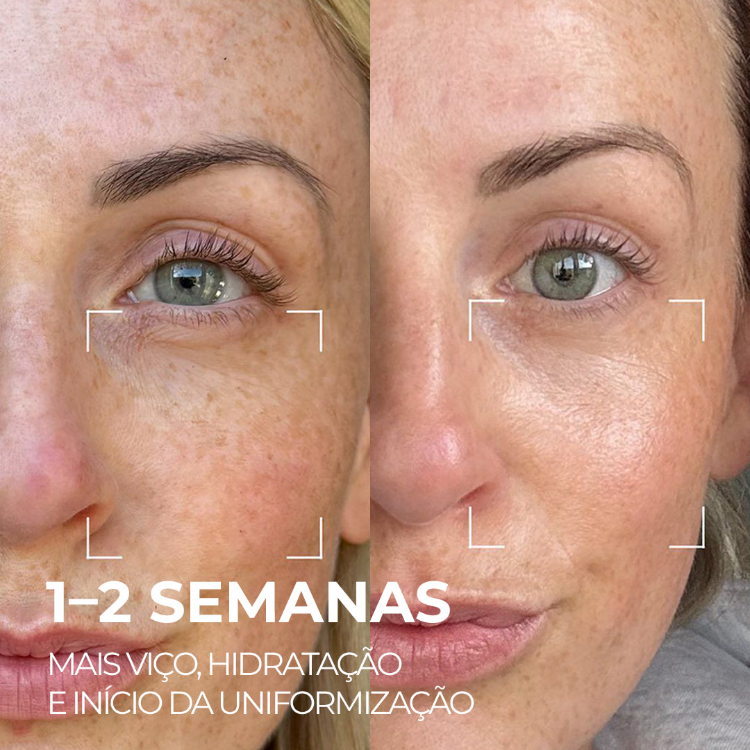 7 dias → Pele mais luminosa, hidratada e com toque aveludado