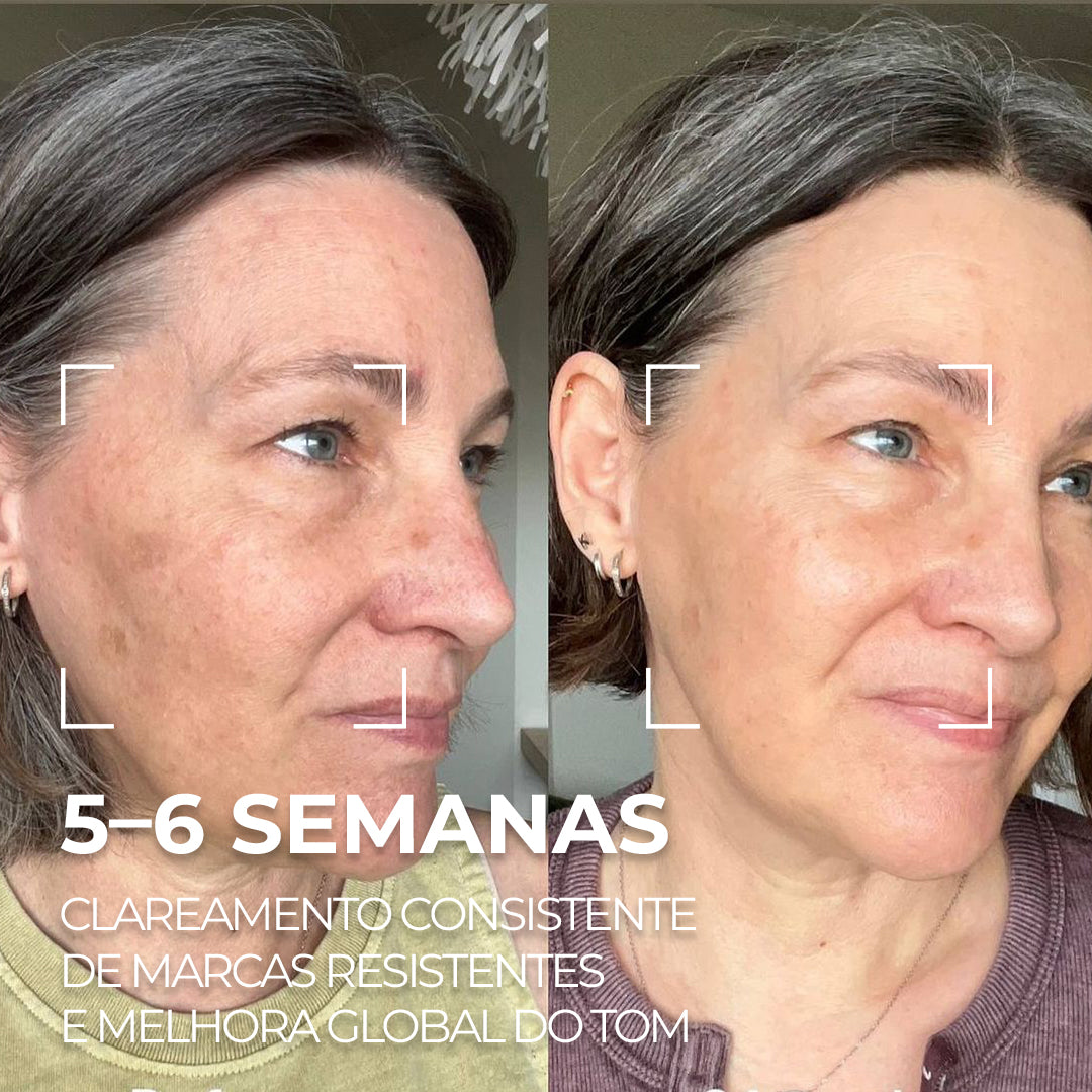 Clareamento consistente de marcas resistentes e melhora global do tom