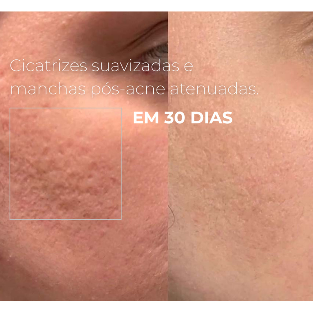Cicatrizes suavizadas e manchas pós-acne atenuadas.