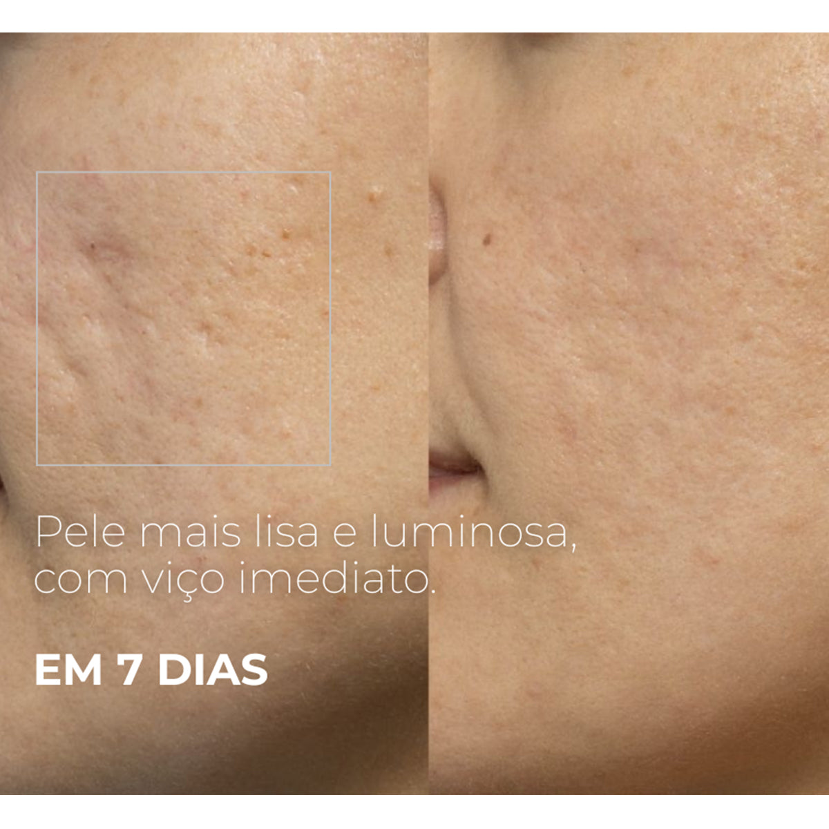 Já nos primeiros 7 dias é possível notar uma pele mais lisa, viçosa e radiante. Resultados visíveis como poros refinados e textura uniforme surgem entre 15 e 30 dias de uso contínuo.