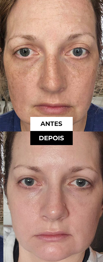 Resultado? Uma pele clara, uniforme e luminosa com segurança, sem descamação agressiva e sem pausas no tratamento.