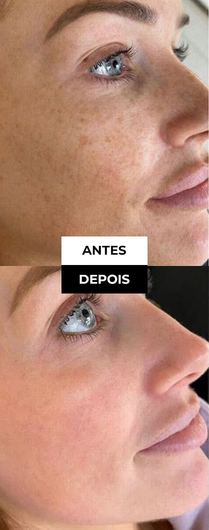 - Clareamento contínuo → redução visível de manchas e melasma